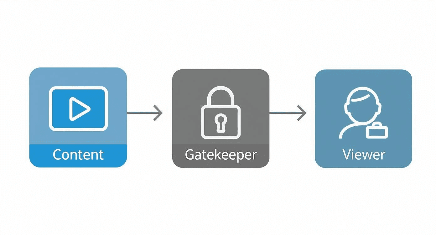 Another critical layer is tokenized access. Instead of just verifying a user has a valid subscription, this method uses a dynamic, short-lived security token for every single playback request. Each time someone hits "play," your system generates a unique, one-time-use token that gives them permission for that session and that session only.