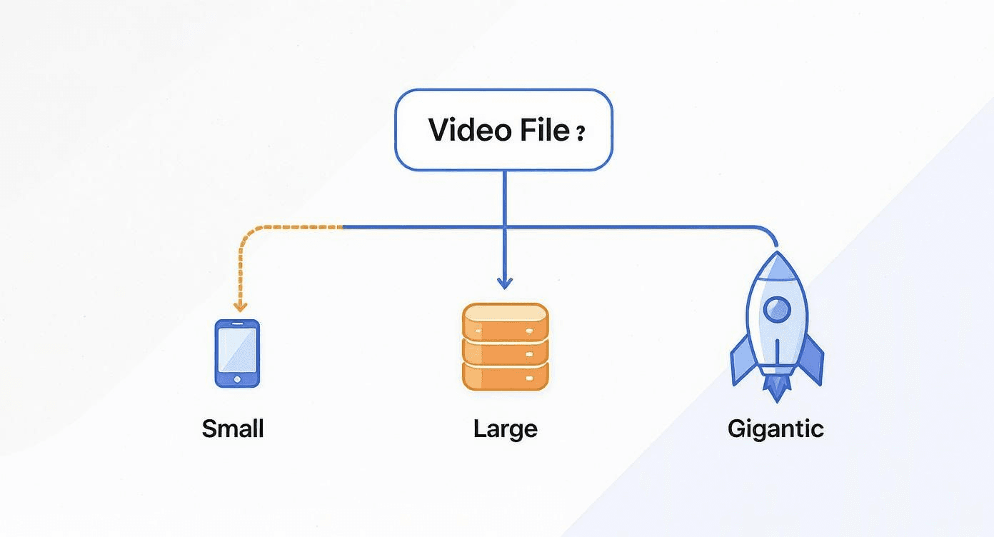 Nine times out of ten, deciding how to send a video boils down to one thing: file size. A quick clip of your cat doing something weird has totally different needs than a 4K wedding video you just spent 40 hours editing for a client. Picking the right tool doesn't just get your video there; it makes sure it arrives looking great and stays secure.