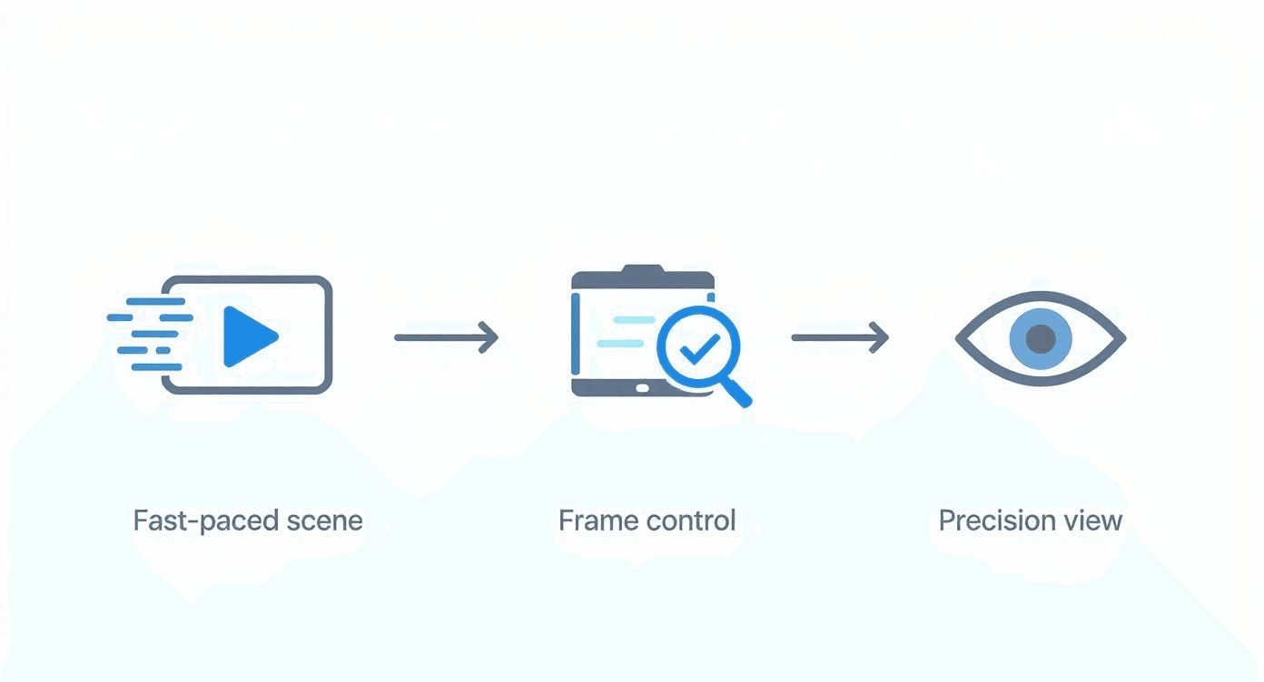 Think of this guide as your roadmap to mastering this skill. We'll cover the specific keyboard shortcuts and workflows for everything from simple web players to professional-grade software. And when you're working with a team where frame accuracy is everything, a dedicated video review and approval platform like PlayPause can make collaboration a whole lot smoother.